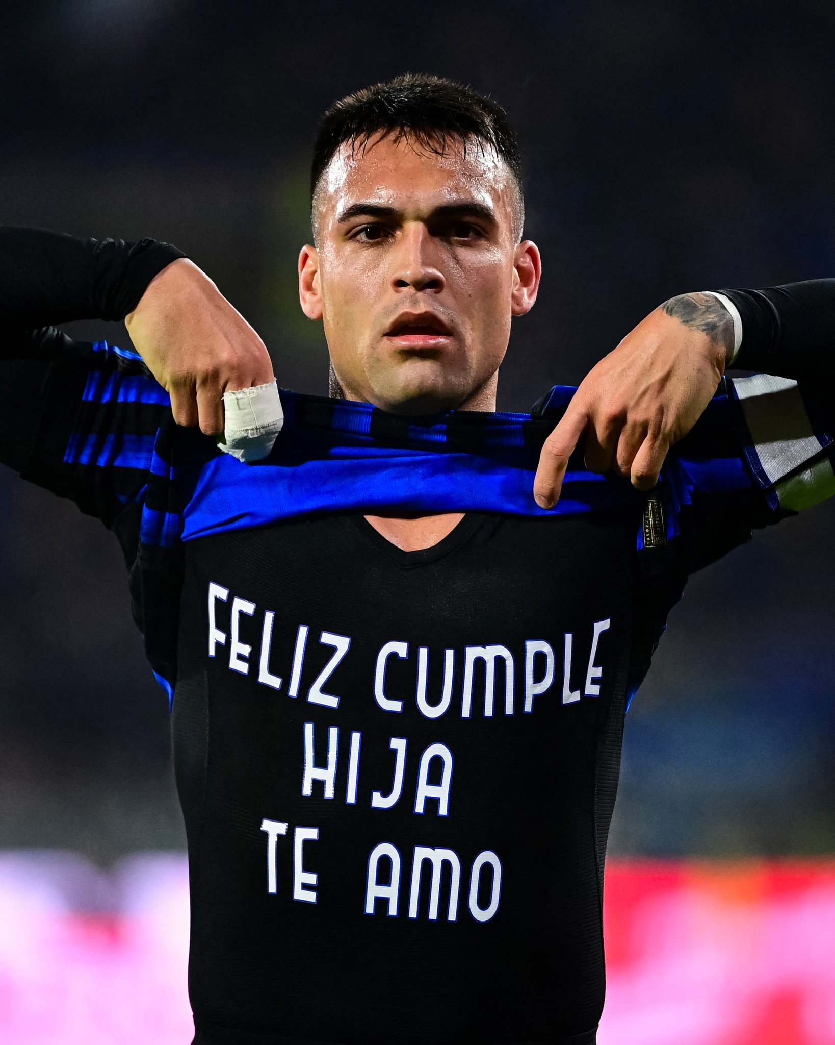 北京时间2月2日,在意甲第23轮的比赛中,劳塔罗开场16分钟利用角球机会头球破门,帮助国际米兰在半场过后客场2-0领先于克雷莫内塞。在进球之后,劳塔罗掀开了自己的球衣并亮出了印在比赛背心上的一句话:“生日快乐妮娜,我爱你。”据了解,劳塔罗把自己本场比赛的这粒进球献给了他迎来5岁生日的女儿妮娜。